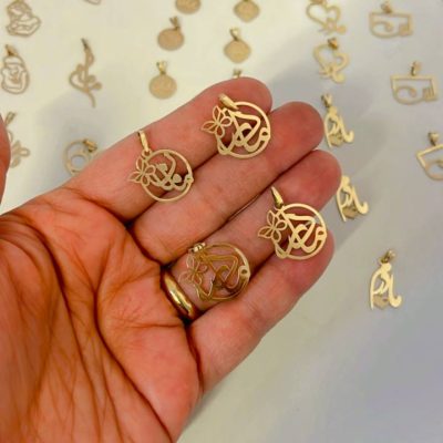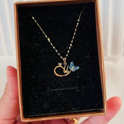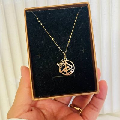 پلاک طلا طرح «میم مثل مادر» با پروانه کریستالی