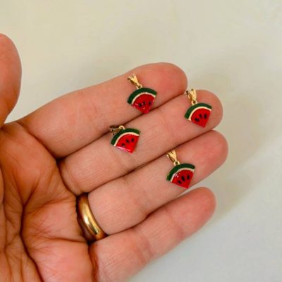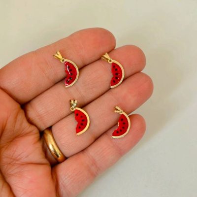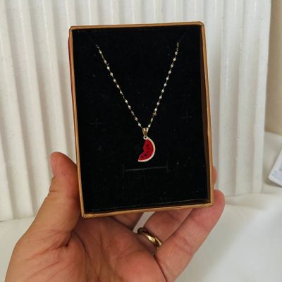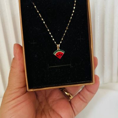 پلاک طلا کادویی هندوانه گاز زده (میناکاری قرمز و سبزیلدایی)