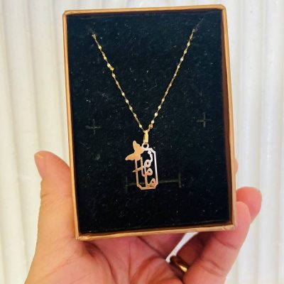 پلاک طلا نوشته مادر با قاب چهارگوش و پروانه