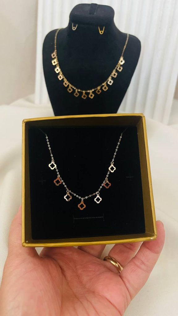 گردنبند طلا ونکلیف مینیمال مدل گل چهاربرگ