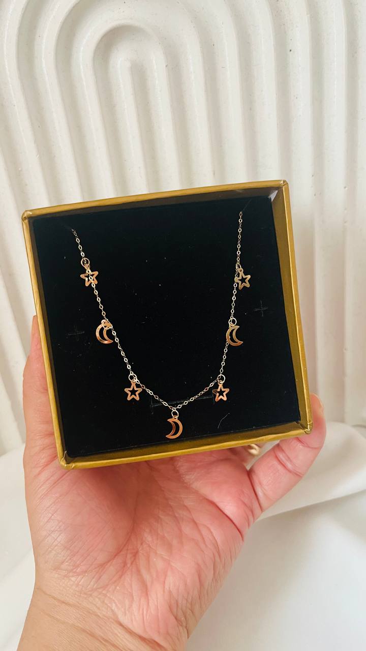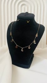 گردنبند طلا ظریف طرح ماه وستاره انتخابی ایدهآل برای افرادی است که به زیورآلات سبک و مینیمال علاقه دارند.