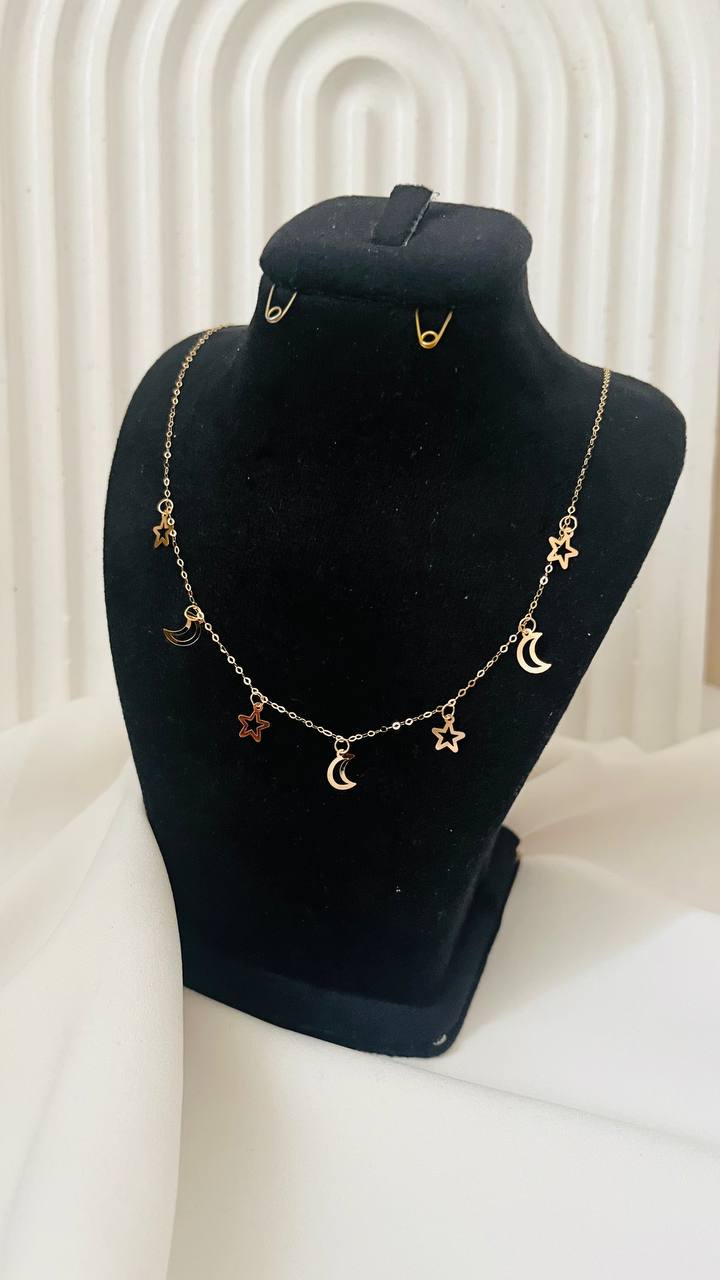 گردنبند طلا ظریف طرح ماه و ستاره | وزن زیر ۱ گرم | مناسب مهمانی