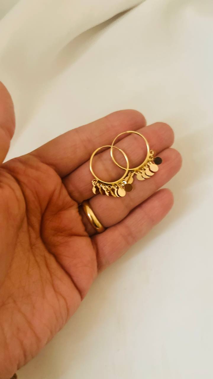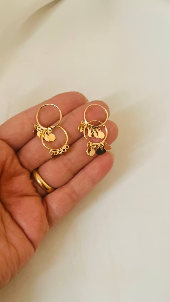 گوشواره طلا حلقهای آویزدار با طراحی ظریف و مدرن، انتخابی شیک برای استفاده روزمره و استایلهای مینیمال است. این گوشواره از طلای براق با حلقهی سبک و آویزهای پولکی متحرک ساخته شده که با حرکت، جلوهای زیبا و چشمنواز ایجاد میکند.