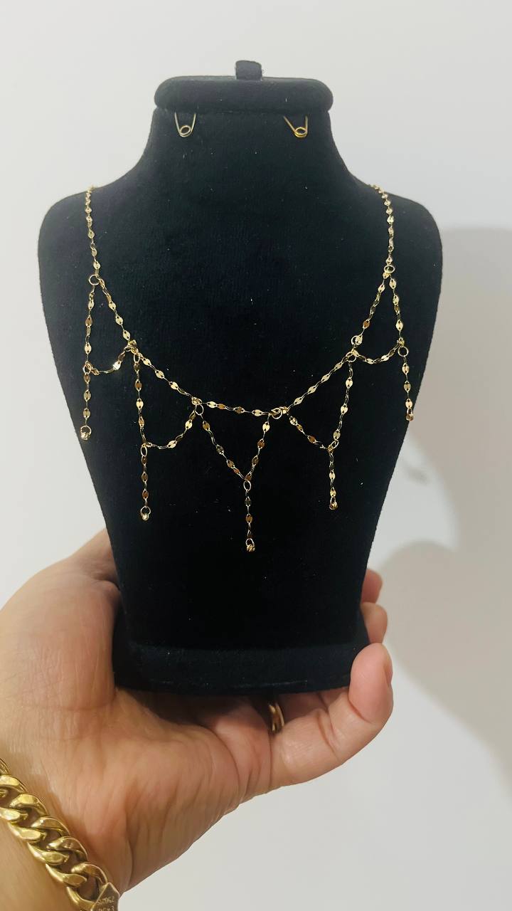 گردنبندی سبک و مینیمال از جنس طلا با آویزهای آبشاری؛ مناسب ستکردن با انواع لباسها در مهمانی و استفاده روزمره،۴۵سانت
