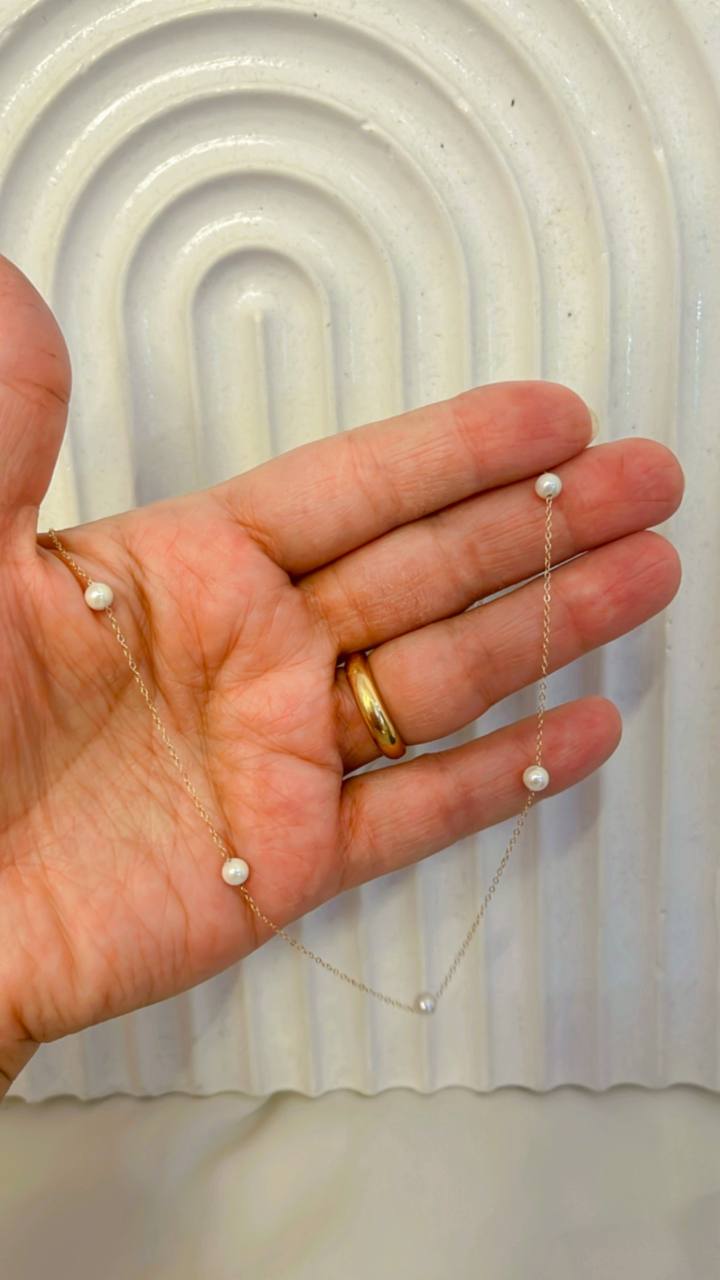 گردنبند طلا زنانه۴۰سانت با زنجیر ظریف و مرواریدهای درخشان ، هدیهای خاص و ماندگار برای عزیزانت. مناسب برای مناسبتهایی مانند تولد، سالگرد و ولنتاین