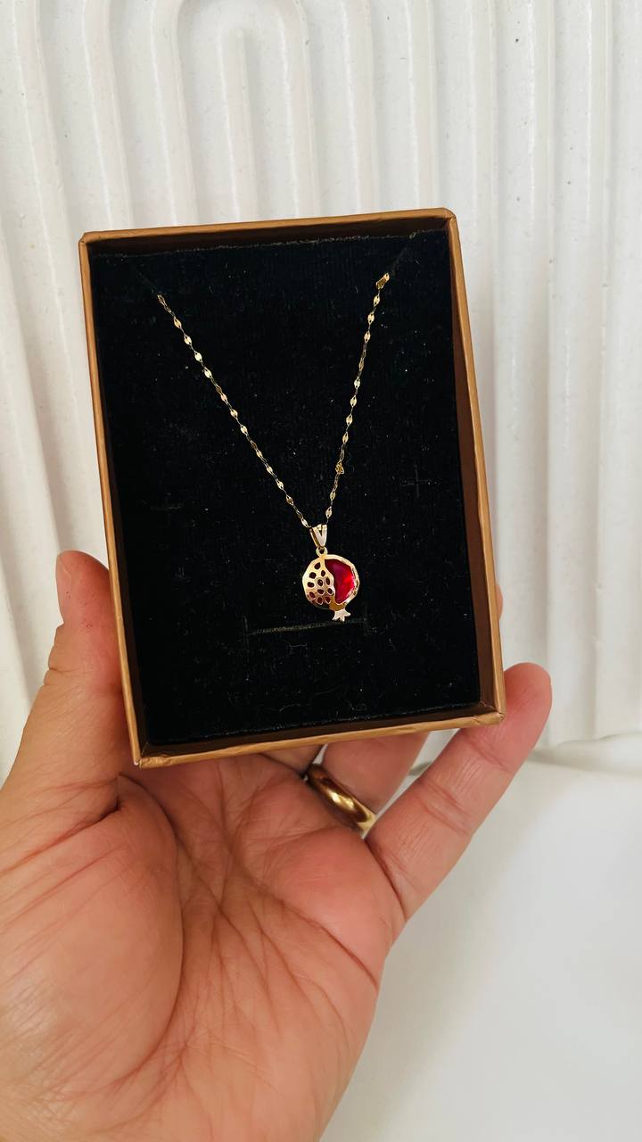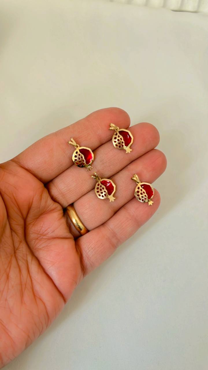 پلاک طلا انار، طلا یلدایی، پلاک طلا مینایی، آویز طلا دانهدار، زیورآلات طلا یلدا، هدیه یلدایی طلا