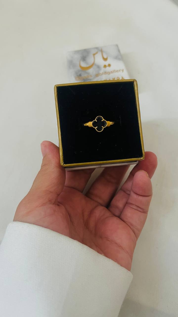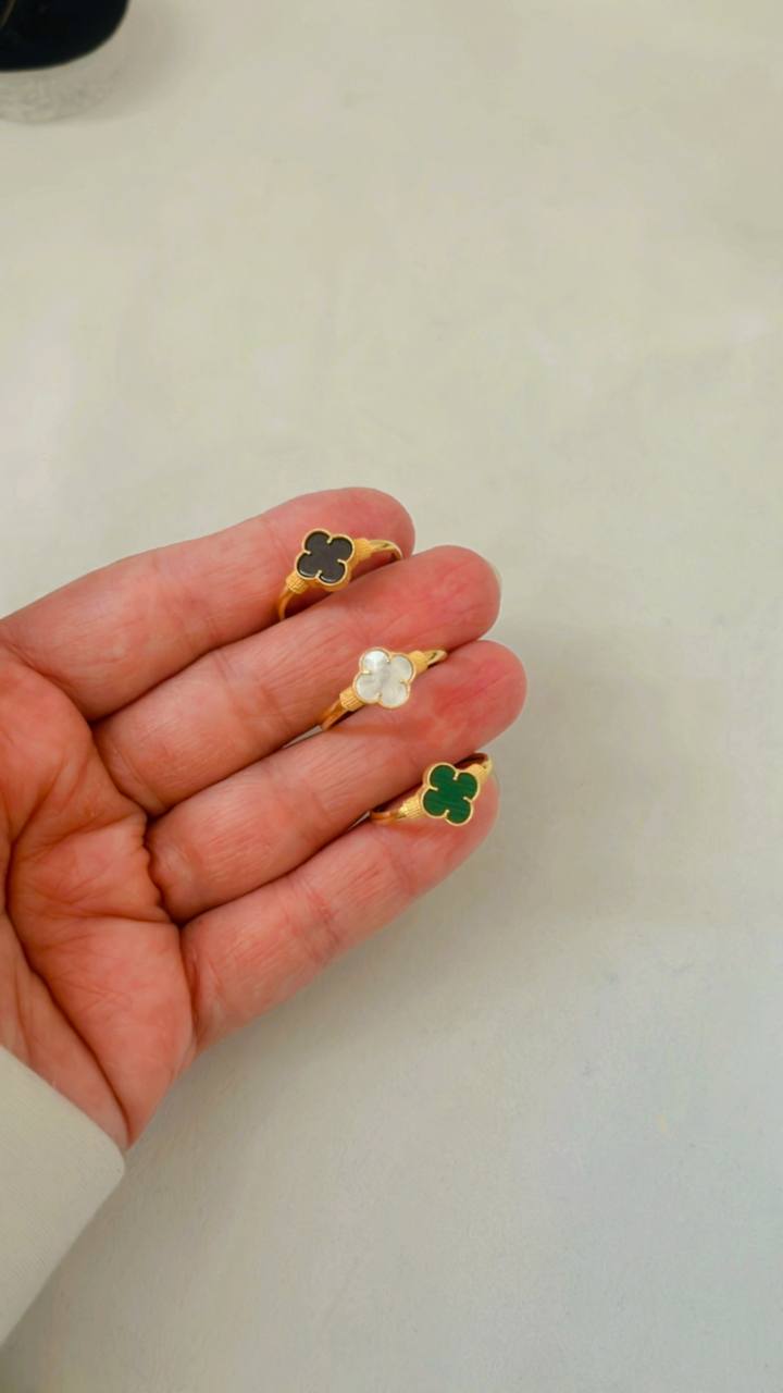 انگشتر ونکلیف طلای زنانه با طرح چهاربرگ، در سه رنگ خاص (سفید، مشکی و سبز). انتخابی لوکس برای استایل روزانه و هدیه دادن