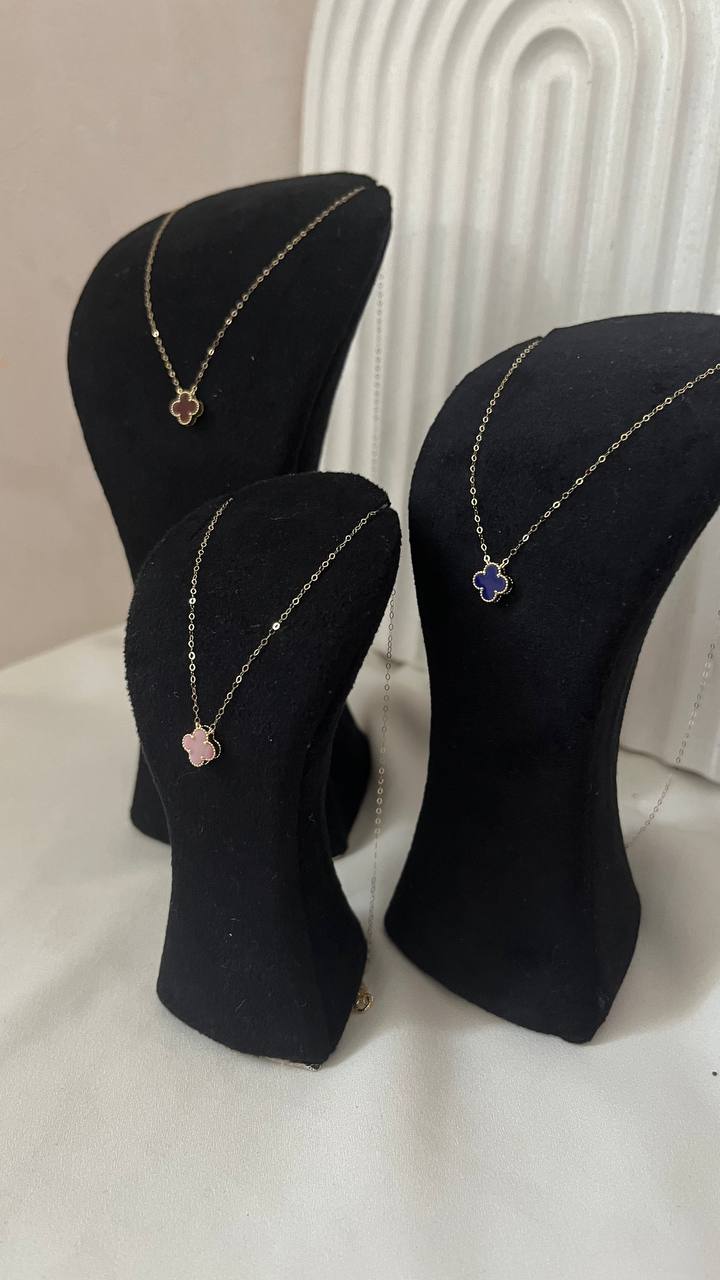 این گردنبند از طلای ۱۸ عیار ساخته شده و در رنگهای جذاب مشکی، صورتی و سرمهای عرضه میشود تا بهراحتی با هر استایلی ست شود.
