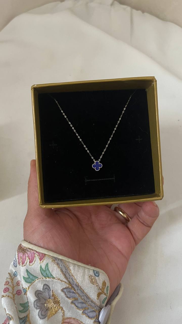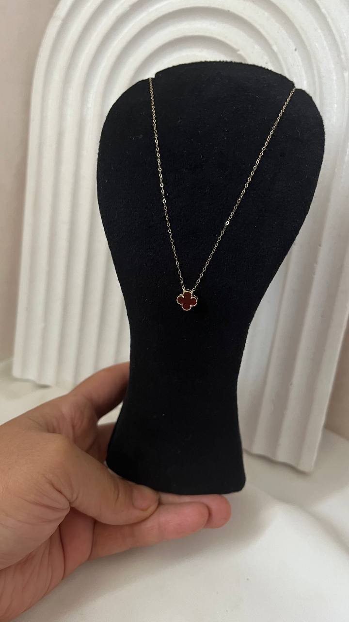 گردنبند طلا ونکلیف مینیمال با طراحی الهامگرفته از گل چهاربرگ، ساختهشده از طلای ۱۸ عیار.