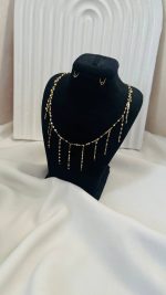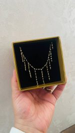 ین گردنبند طلا شرابهای زنانه با طراحی زنجیرهای آویز ظریف، جلوهای بسیار خاص و درخشان دارد.