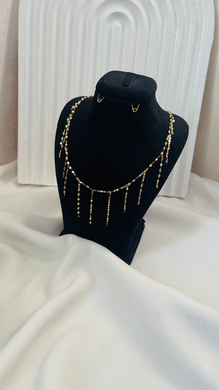 گردنبند طلا شرابهای زنانه با طراحی زنجیرهای آویز ظریف و درخشان؛ ساختهشده از طلای ۱۸ عیار. مناسب استایلهای خاص و مجلسی