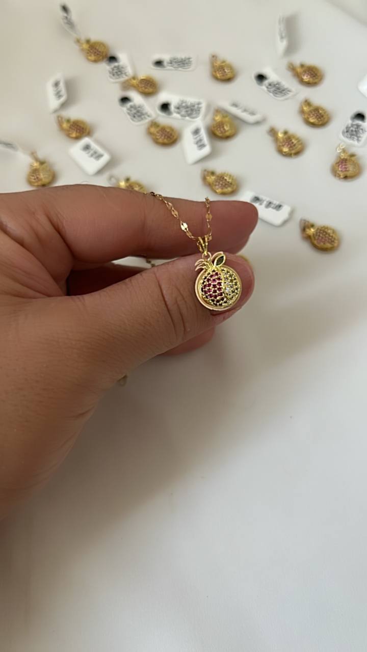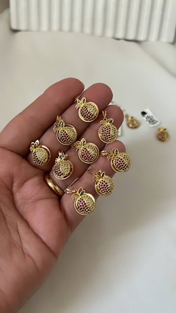 پلاک طلای انار نگیندار با طراحی ظریف و وزن مناسب؛ انتخابی عالی برای هدیه شب یلدا. درخشان، خوشساخت و کاملاً مناسب ساخت گردنبند یا دستبند. نماد عشق و برکت، یک گزینه جذاب برای هدیهای خاص و ماندگار،قاب دور کار وآویزش از طلاست .